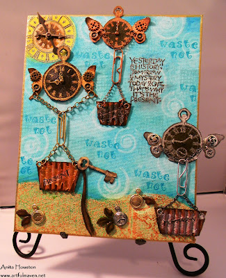 And because the stamps, inks and paints seemed to me to be doing a pretty good job, I put away the various embellishments I'd got out, leaving the piece unadorned to speak for itself.