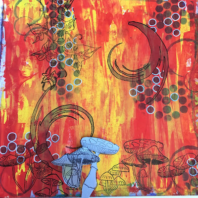 To finish the page off I added circles using lids and black and white inks. I then doddle a little with black and white paint pens