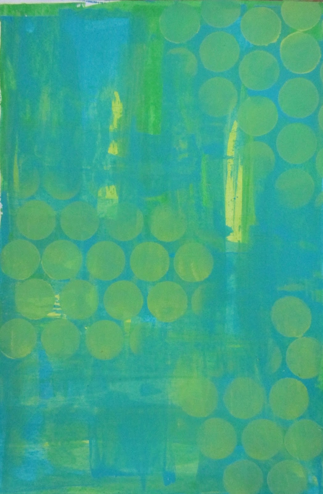 I started by covering the page with Gesso.Then using an old key card I scrapped Vibrant Turquoise, Fresh Lime and Cut Grass Dylusion paints over the whole page, allowing a small amount of drying time between layers.