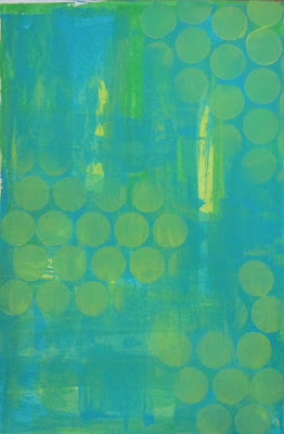 I then sponged some Cut Grass Dylusions paints through the Sequin Waste mask, moving the mask to different areas of the page.