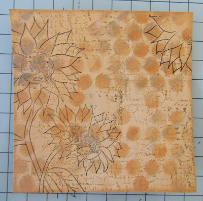 Once dry, which took no time at all, I stamped Lesleys sunflower stamp, so only a small section of the flower showed at the top and although more of the stamp can be seen at the bottom it still over hangs the card.
