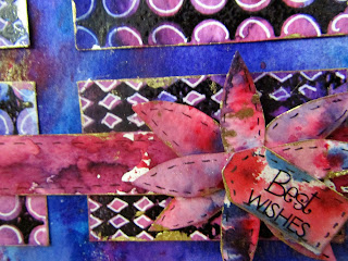 We all use wet wipes to clean up after our very messy selves when we craft, and sometimes they end up the most beautiful colours. If you dry them out they can by used in so many ways here I have turned one into a background for a very simple card.