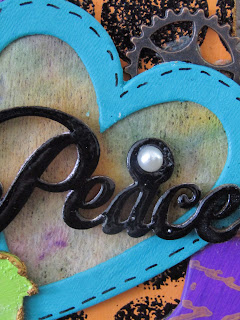 I used sponges to apply Dylusion paints to an A3 sheet of pearlescent card. I applied two layers of these pants and let them dry, as I used Dylusions paints it dried very quickly.