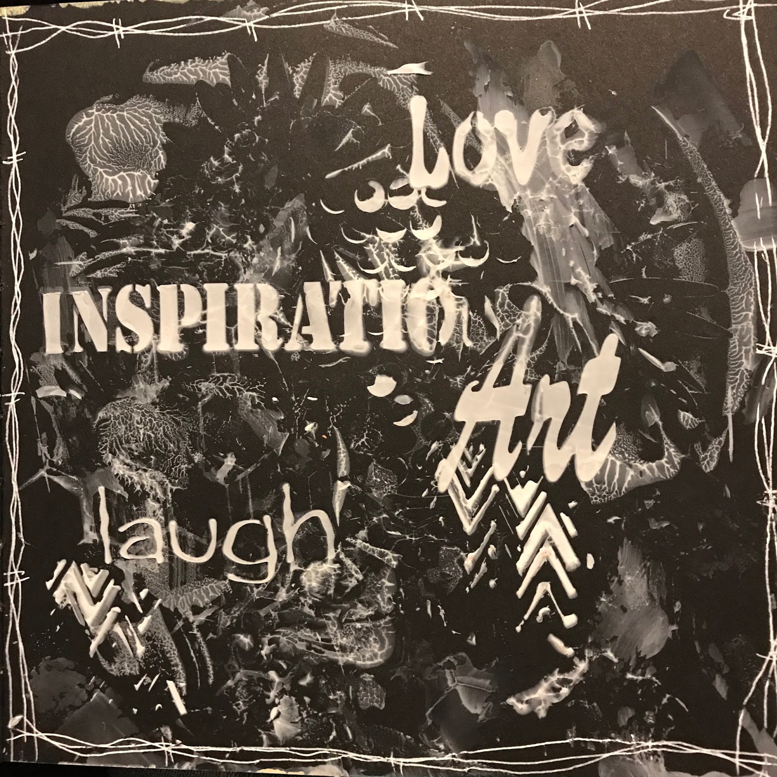 - Doodle some flowers in random places with a white paint pen, also go over the stamped and stenciled images as needed.